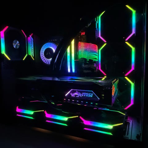 Tietokoneen tuulettimien RGB-valaistus ei tällä hetkellä toimi, koska valaistuksen hubi (hubi emolevylle) pitää hankkia ja kytkeä erikseen.