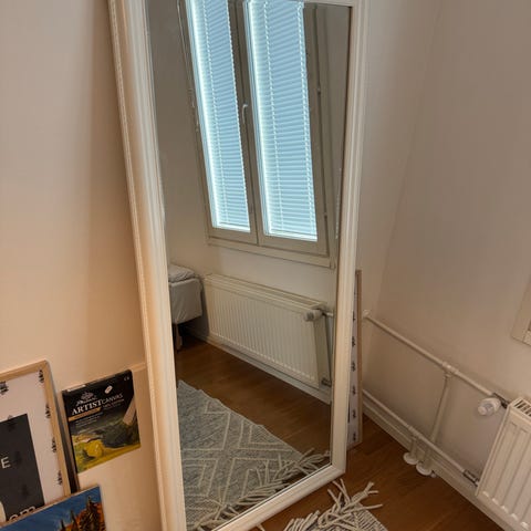 Myydään muutossa tarpeettomaksi jäänyt siisti valkoinen peili.