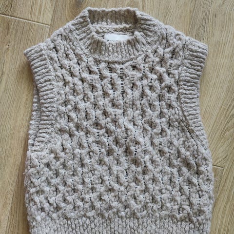 Harmaa villaliivi ja siihen sopiva Marc O’Polo alupaita. Liivin materiaalit näkyy kuvista.