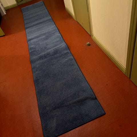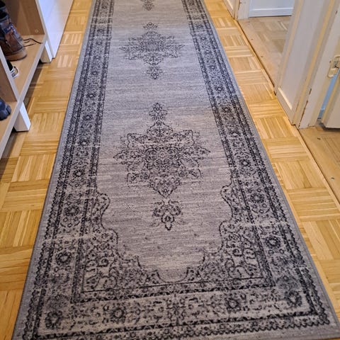 ruskea /harmaa matto ,pesty viime syksynä ,kumipohja ,ei liu,u pysyy hyvin suorassa