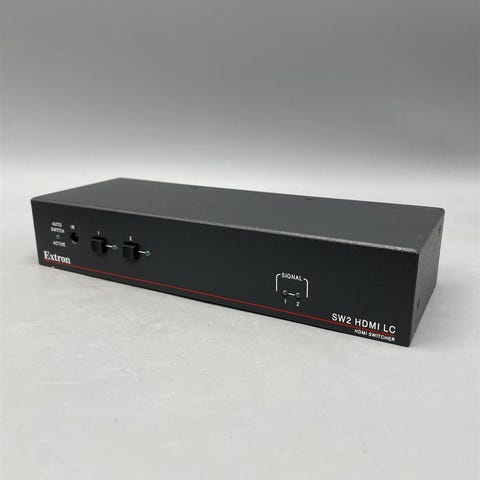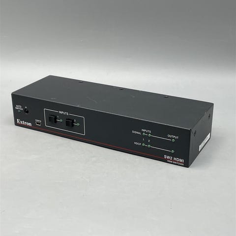 Extron SW2 HDMI on HDMI-kytkin, jossa on kaksi tuloa ja yksi lähtö. Laitteessa on automaattinen kytkentätoiminto ja se tukee HDCP:ta.