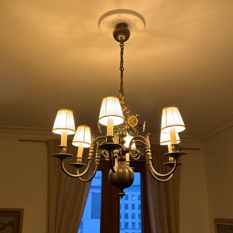 Hakusanat: antiikkinen, vintage, retro, rokokoo, valaisin, kristalli, chippendale, kattokruunu, kangasvarjostin, vintage huonekalut