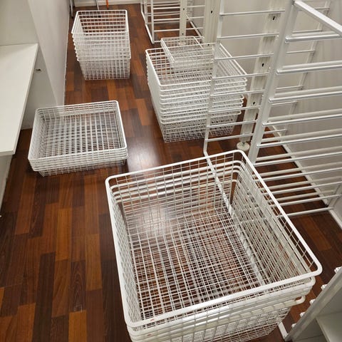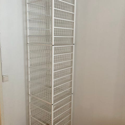 2 kpl Elfa Basic koripaketteja vaatekaappiin. Valkoinen metallinen lankakorisarja, mitat 740 x 450 x 540 mm. Pakettiin kuuluu telinepäädyt, poikituet ja neljä irrotettavaa lankakoria. Soveltuu vaatekaappien ja kodinhoitotilojen säilytysratkaisuksi esimerkiksi vaatteille, liinavaatteille ja kodintekstiileille.