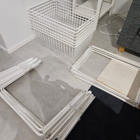 Hakusanat: säilytyskori, Valmistaja, metalliverkko, vetolaatikot, metallikori, säilytysratkaisu, moderni säilytys, elfa, valkoinen kori, kodin järjestys, käytännöllinen kori, elfa säilytysjärjestelmä