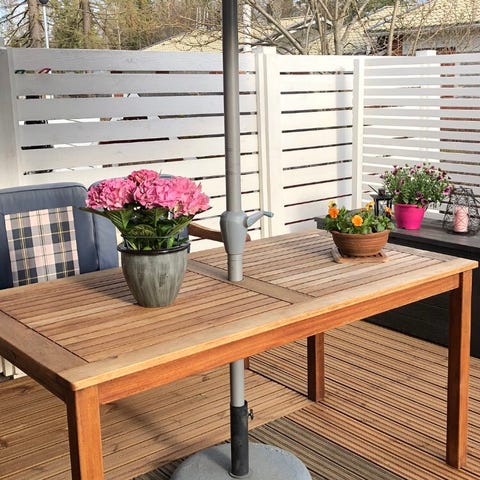 Valkoinen varjo, halkaisija 3m. Kevyt, mutta vahva muovinen paino, joka täytetään esim. vedellä.