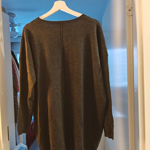 Käyttämätön, tummansininen Zizzi neule. Zizzi koko M mikä vastaa kokoa 46-48. Aavistuksen a-linjainen. Viskoosi/puuvillasekoitetta. Kainalo-kainalo venyttämättä 63cm, olka-helma 100cm.