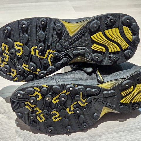Kuvan paristi ulkoilleet nastakengät.