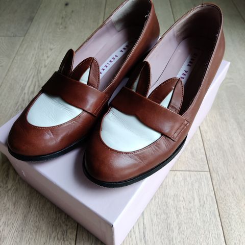 Mustat nahkaiset Minna Parikan Luella pupunkorvaiset tennarit, koko 38. Sivuissa venyke piilossa korvien alla, ei näy käytössä. Hintaan sisältyy kenkien lisäksi alkuperäinen laatikko, silkkipaperit ja säilytyspussi (dustbag).