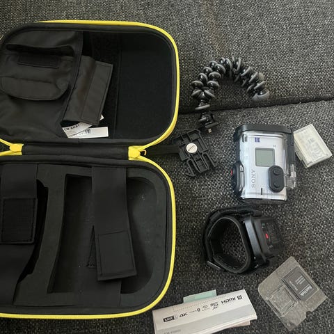 Sony action cam mini HDR-AZ1, vesitiiviskuori veden alla kuvaamiseen, latauskaapeli, otsapanta, käyttöohjevihko, alkuperäinen säilytyslaatikko. Tallentava tai live- kuvaa lähettävä, stereomikrofoni. Nouto ja käteinen!