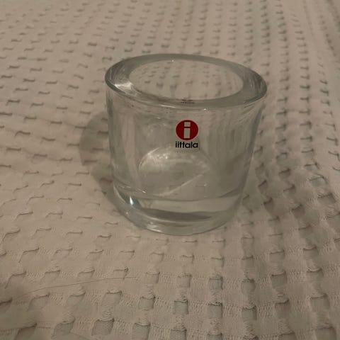 Harmaan sävyinen lasi, tuikkukuppi. Ei juuri käytetty.
