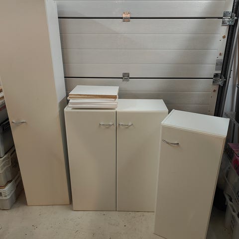 Keittiökaapistot valkoinen puureunuksilla, tule itse purkaan!