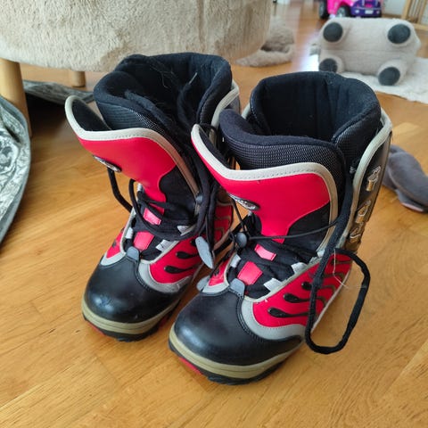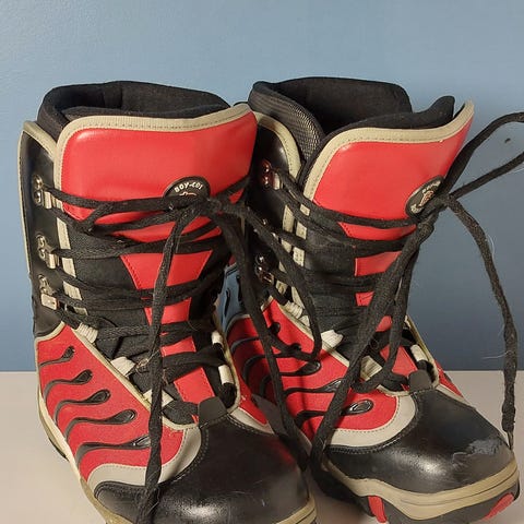 Boy-Cot Boardwalk lumilautakengät, koko 26. Väritys musta ulkopinta ja punainen sisävuori. Nauhakiinnitys edessä. Kengissä pehmustettu varsi ja sisävuori, jotka tukevat nilkkaa ja lisäävät käyttömukavuutta. Soveltuvat lumilautailuun.