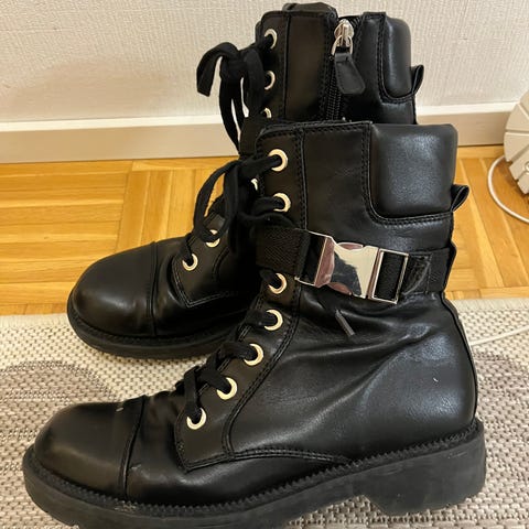 Vähän käytetyt mustat nahkaiset nilkkurit, koko 38, merkki Nilson. Korossa pientä käytönjälkeä, joka korjattu.
