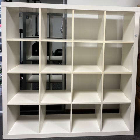 Ikean Kallax 4x4, valkoinen, hyvässä kunnossa, purettu. Mitat 147cm x 147cm x 39cm.