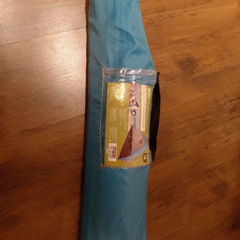 Fatboy Miasun aurinkoteltta rannalle. Teltta on alkuperäisessä pakkauksessa. Väri: Azur