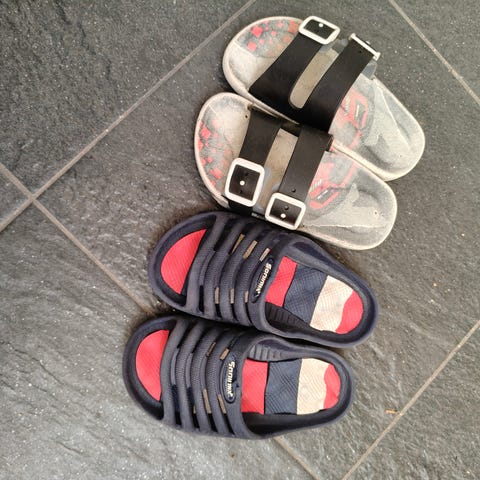Okran väriset sandaalit. Yhdellä lapsella käytetty, ehjät. Pientä käytön jälkeä voi olla pinnassa ja toisessa kengässä päällä tummaa jälkeä, jota en saanut pois. Huomioitu hinnassa.