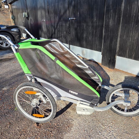 Thule Cheetah Chariot yhden lapsen erittäin kevyt pyörä-/juoksukärry. Toimii myös kävelyrattaina kääntyvien pyörien kanssa tai juoksurattaina etupyörän kanssa.