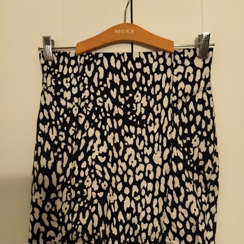 Pantterikuvioinen ja kukallinen trikoo-croptoppi. S-kokoisia. Trikootopin kokolapussa lukee M, mutta sitä on kavennettu sivusaumoista. Yhteishinta 2€.