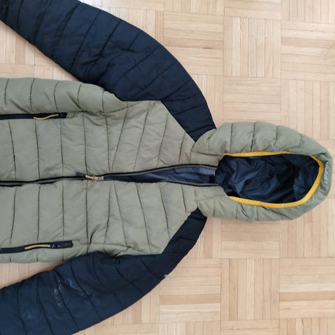 Ihan ok kuntoinen, vetskari toimii, ei reikiä, mut pientä tummumaa ainakin hihojen takapuolella, näkyy toisessa kuvassa. Yleisilme kuitenkin siisti 👍