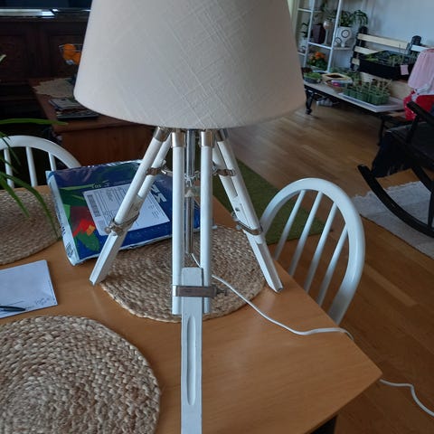 Pöytälamppu jossa kirkas valkoinen lamppu
