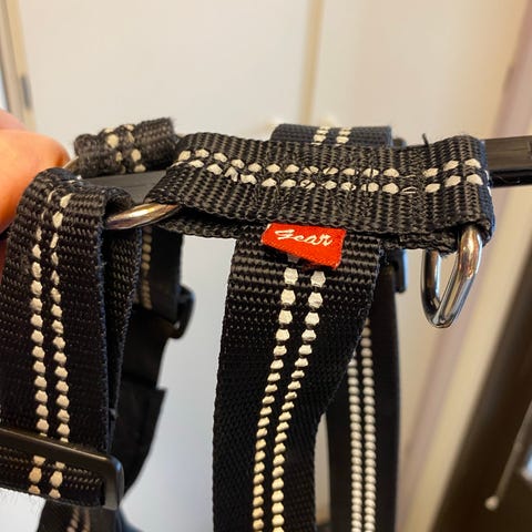 Mustista ja Mirristä ostetut "feel active" merkkiset koiran valjaat.