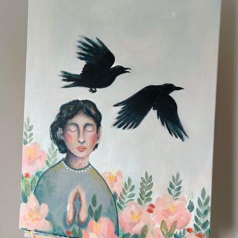Akryylimaalaus, jossa lintuaihe. Taidemaalaus, akryylimaalaus, sisustustaide.
