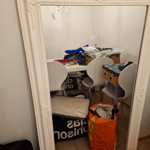 &Tradition koristepeili, jossa on kullansävyinen, koristeellisesti muotoiltu kehys. Sopii käytettäväksi esimerkiksi eteisessä, olohuoneessa tai makuuhuoneessa sisustuselementtinä ja peilinä. Peili voidaan sijoittaa lattialle nojaamaan seinää vasten tai ripustaa seinälle, mikäli kiinnitystarvikkeet ovat saatavilla. Itse maalattu lisää kehyksiä, painava! Käteinen!