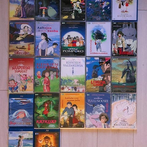 📺 14 kappaletta Hayao Miyazakin kuuluisia anime-elokuvia. Levyt ja kotelot ovat kaikin puolin hienossa kunnossa. ✨
