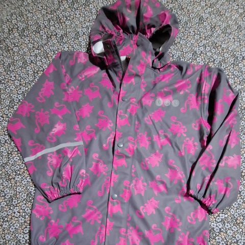 Meille tarpeeton Rukan sadetakki koossa 128. Jonkun verran käytön jälkiä takissa. Koiratalous.