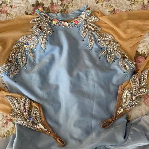 Naisten tanssiasu, luistelu/ jäätanssiasu tms. Musta joustava body ja kaksi kertainen kevyt hameosa jossa keltainen nauha.