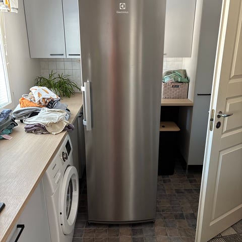 Electrolux kaappipakastin, väri valkoinen. Pakastimessa on useita ritilähyllyjä ja läpinäkyvät vetolaatikot elintarvikkeiden säilytykseen. Ovi aukeaa sivulle ja sisäpuolella on mekaaninen lämpötilansäädin. Soveltuu pakasteiden säilytykseen kotitalouskäytössä.