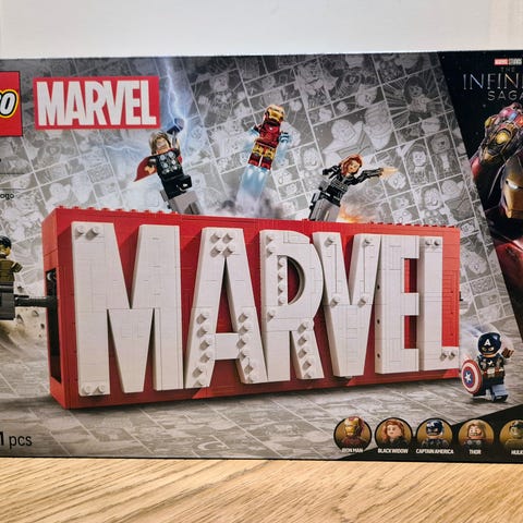 LEGO Marvel rakennussarja. Kuvassa useita Marvel-teemaisia rakennettavia hahmoja ja ajoneuvoja sekä pienempiä tarvikkeita. Sarja sisältää useita minihahmoja ja suuremman rakennettavan hahmon.