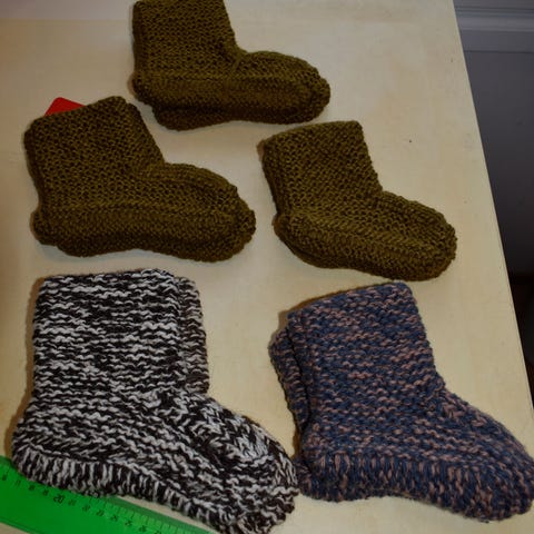 Kuvissa olevan mittanauhan avulla voit hahmottaa kunkin sukkaparin koon. Sukat ovat käytetyjä mutta hyväkuntoisia.