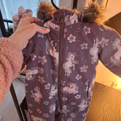 Aivan ihana vaaleanpunainen lämmin toppahaalari untuvalla kylmemmille keleille, sisällä lämpömittari joka näyttää sisälämpötilaa💕