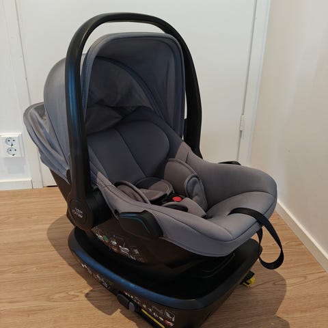 Harmaa kolaroimaton Britax Römer Baby-Safe iSense turvakaukalo ja siihen sopiva Flex Base telakka. Turvakaukalossa viisipistevaljaat ja säädettävät olkahihnat. Kaukalossa valot kahdella eri kirkkausasteella ja alapuolella valo helpottamaan kiinnitystä, ladataan kaapelilla. Telakassa kääntö mahdollisuus ja telakkaan sopii myös seuraavan koon turvaistuin (Britax Elmer Dualfix). Kuvissa lisätietoja.