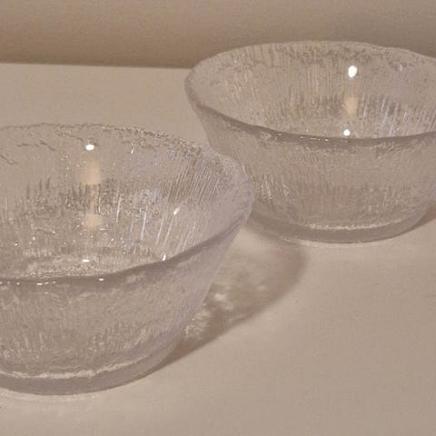 Oikein hyväkuntoiset Iittala Solaris jälkiruokakulhot, 6 kpl. Design Tapio Wirkkala. Korkeus n. 4,5 ja läpimitta 15,5 cm.