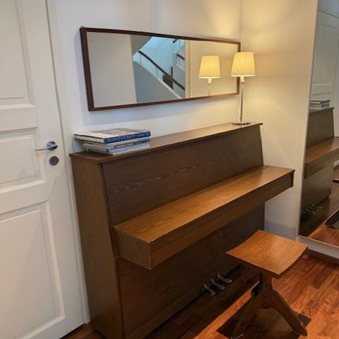 Annetaan venäläinen flyygeli. Palisanteripuuta. Ollut käytössä 90-luvulla, sen jälkeen säilytetty kuvanmukaisesti sisätiloissa.
