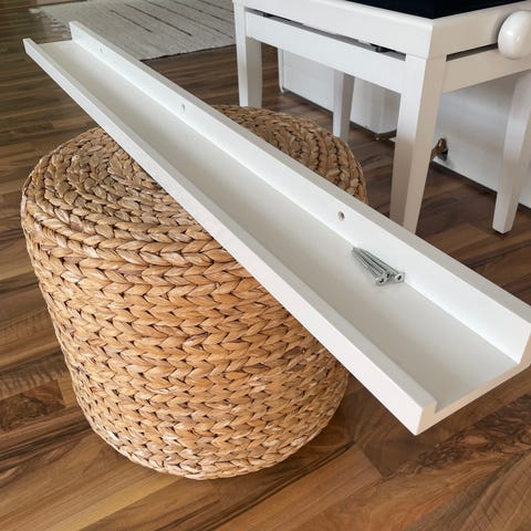 Hyväkuntoinen Jyskistä hankittu hylly metallisilla jaloilla. Sopii esim. eteiseen tai muualle kotiin tavaroiden säilytykseen.