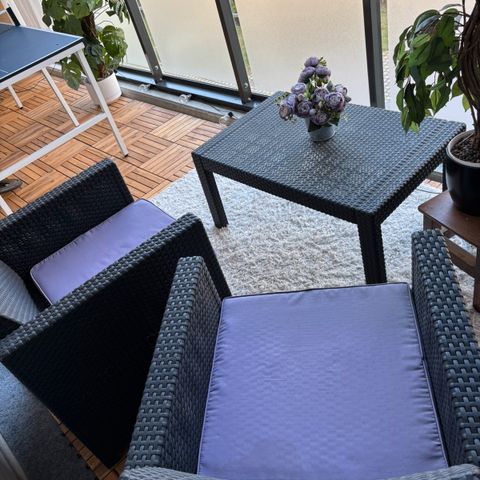 Myydään 05/2024 hankitut, siitä asti sääsuojassa olleet parvekesohvaryhmä, joka polyrottinkia, ja väri harmaa.
