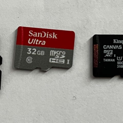 3 microSD muistikorttia SanDisk 32GB, Kingston 64gb, Kingston 32gb