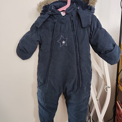 Name it toppahaalari koko 74/80, vuori vähän nukkaantunut mutta muuten siisti ja ehjä ja lämmin. Pinta kangas melko liukasta materiaalia.