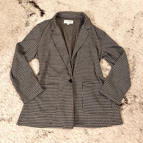 Modelia naisten jakku koossa L. Jakussa on monivärinen, tummansiniselle pohjalle painettu valkoinen graafinen kuosikuvio. Malli on pitkähihainen ja siinä on edessä vetoketjukiinnitys, joka aukeaa myös alhaalta. Sopii käytettäväksi esimerkiksi arkipukeutumisessa tai siistimpänä jakkuvaihtoehtona housujen tai hameen kanssa. Kotimainen laatutuote, ihanan joustavaa mutta ryhdikästä materiaalia. Kivat leikkaukset. Kokomerkintä 40 mutta mahtuu aina koolle XL asti. Mittoja; kainalo - kainalo 51 cm ja olka- helma 61 cm. Voin lähettää. Mmm.