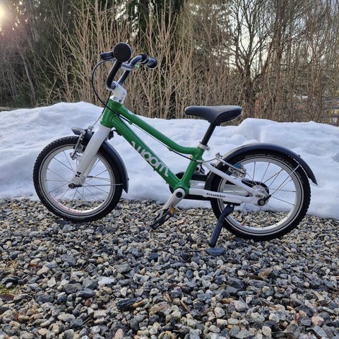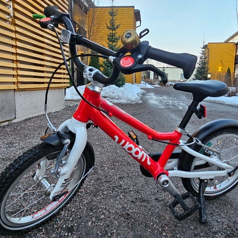 Hyväkuntoinen ja huollettu Woom 2 -polkupyörä tarjolla uudelle polkijalle. Mukaan myös Woomin lisävarustelistalta löytyvät lokasuojat ja jalka.