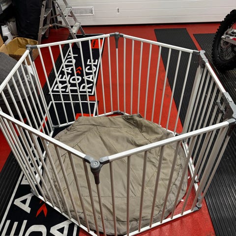 Aitaus muodostaa rajatun ja turvallisen leikkialueen pienelle lapselle. Aidan sivuissa on verkkopaneelit, joista aikuinen näkee lapsen ja lapsi ympäristön. Pakkaus sisältää aitauksen lisäksi pienen määrän "pallomeripalloja".