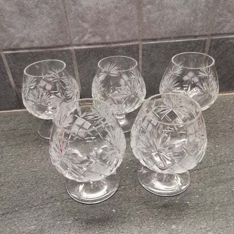6 kpl Zawiercie konjakki kristallilasisarja käsin hiotut ja kaiverretut. Kirkasta lyijykristallia, valmistettu Puolassa.