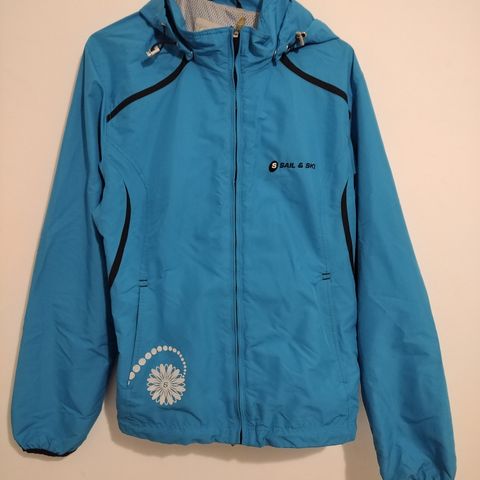 Ohut kuoritakki, tuulenpitävä ja vettä hylkivä pinta, mutta ominaisuudet tod.näk. jo heikentyneet. Kokomerkintä M, vastaa paremmin S. Mitat kainalo-kainalo 48 cm, olka-helma 62 cm, hiha 65 cm.