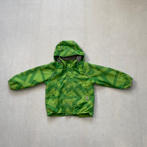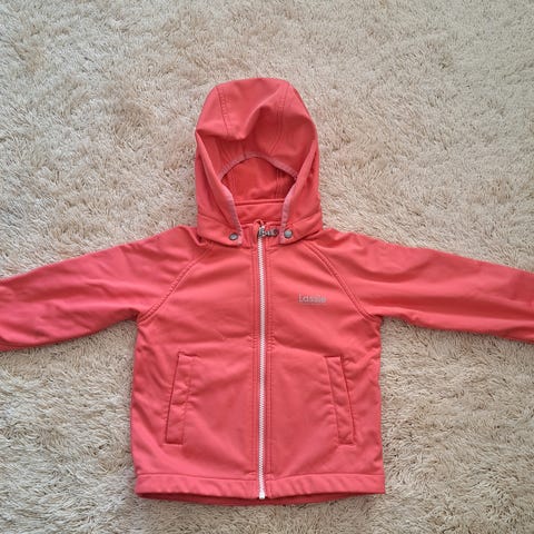 Vaaleanpunainen välikausitakki, jossa linnun kuvia, koko 98. Käytetty noin vuoden ajan. Ehjä, vetoketjun ympärillä hieman tummumista. Edellisen omistajan nimi kirjoitettu mustalla tussilla takin sisällä olevaan lappuun.