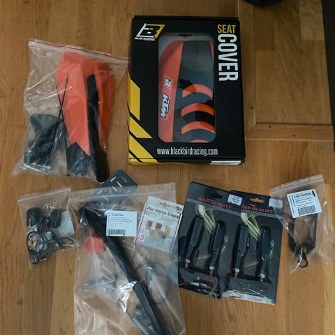 Tämmönen paketti tavaraa. Kaikki kuvassa myynnissä ellei toisin mainita. Mm. kaasuvaijeri, rungonsuojia, tankin korkki, käsigripit, kaasarin korjaussarja ja paljon muuta. Yksittäisistä osista saa tarjota ja jos haluaa ostaa enemmän tai jopa kaikki saa paljon halvemmalla.