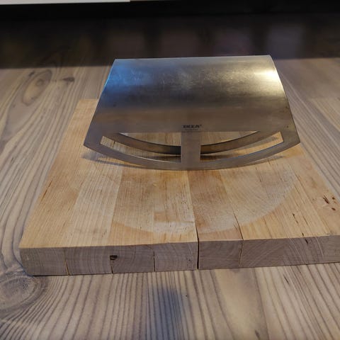 Myydään yrttileikkuri ja puinen alusta.
