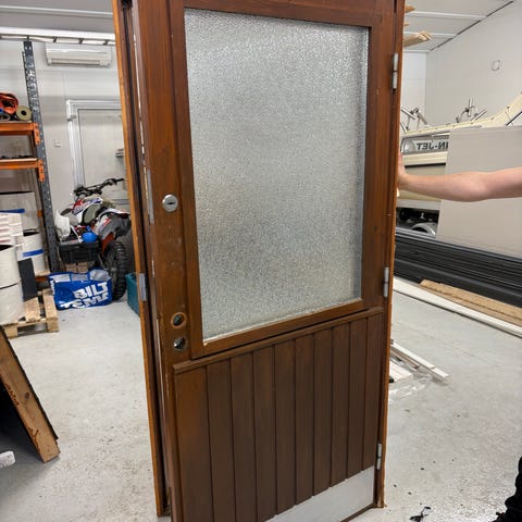 Myydään ikkunallinen väliovi karmeineen. Oven koko on 990x2090mm karmien reunoista. Ovi on siistissä kunnossa ja toisella puolella pinnassa on kaksi ruuvia, joissa on ollut laskosverho.